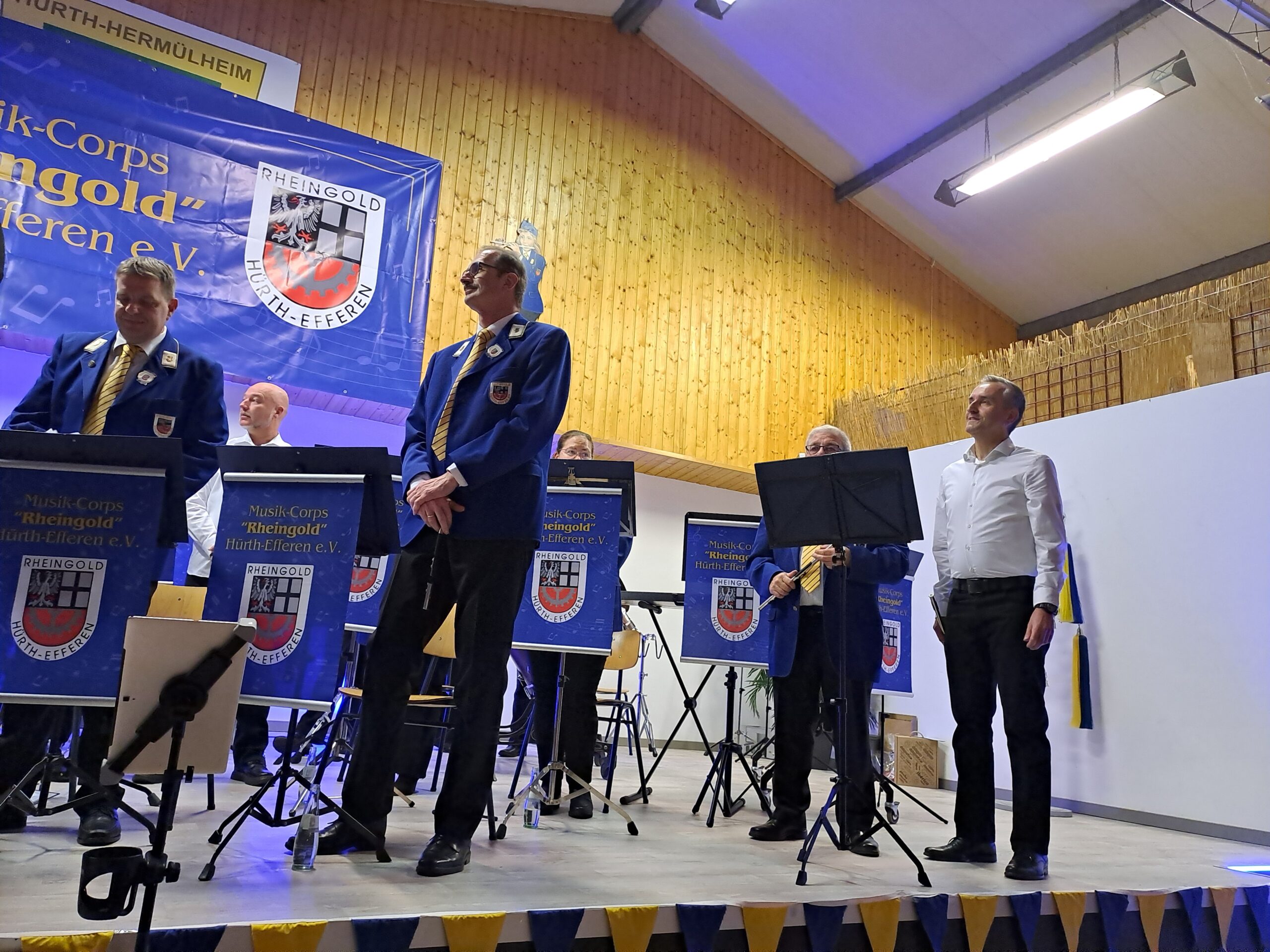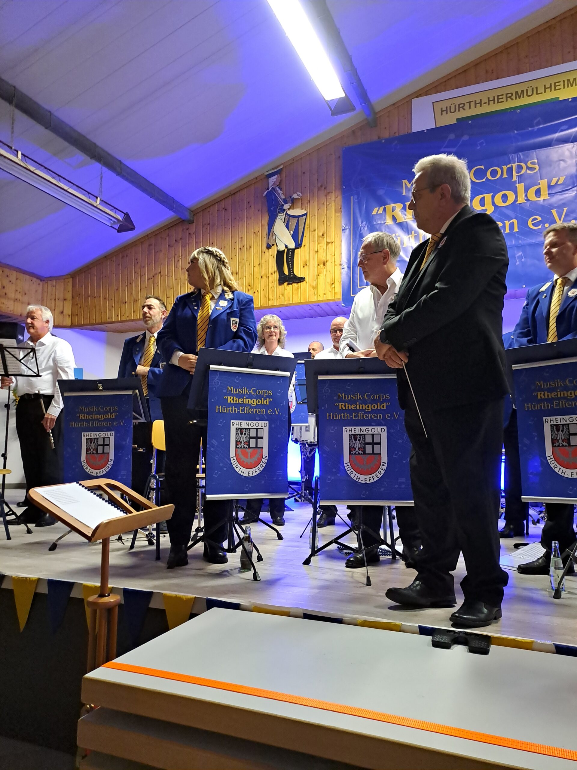Wer da war in der Schützenhalle der St. Huberts Schützenbruderschaft Hermülheim, der war auch begeistert vom Konzert des Musik – Corps “Rheingold” Efferen e.V. zur Erinnerung an den langjährigen Vorsitzenden und Dirigenten Willi Effern. Mit Stolz, Freude und mit mancher Träne wurde an ihn gedacht und seine Lieder gespielt, vom Marsch, Polka und Kölscher Karnevalsmusik! Dirigiert von Karsten Düsseldorf, der letzte Schüler von Willi Effern, und Paul Roth! Ein Stimmungsvoller Konzertabend. Danke und weiter so!!