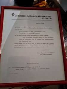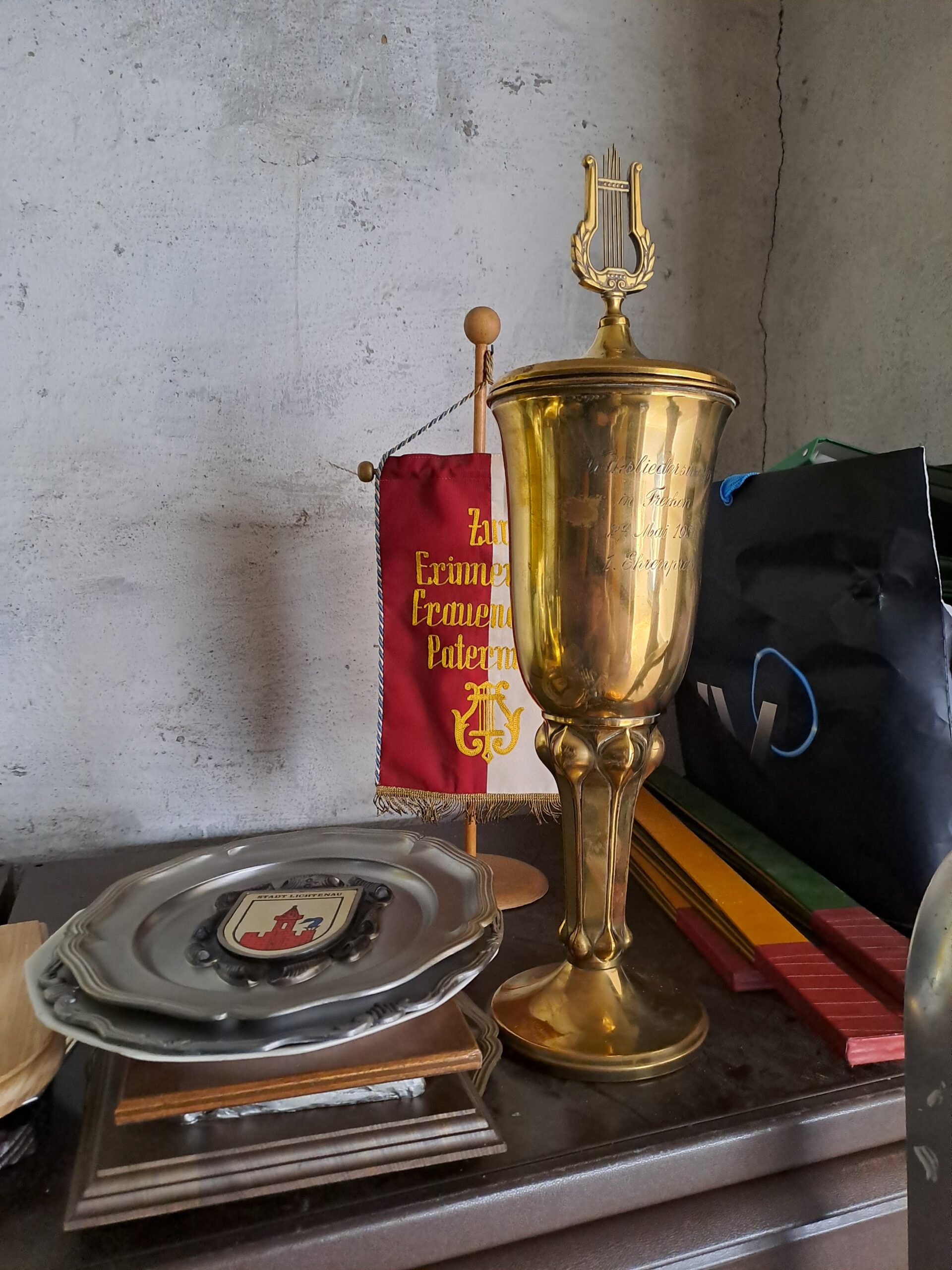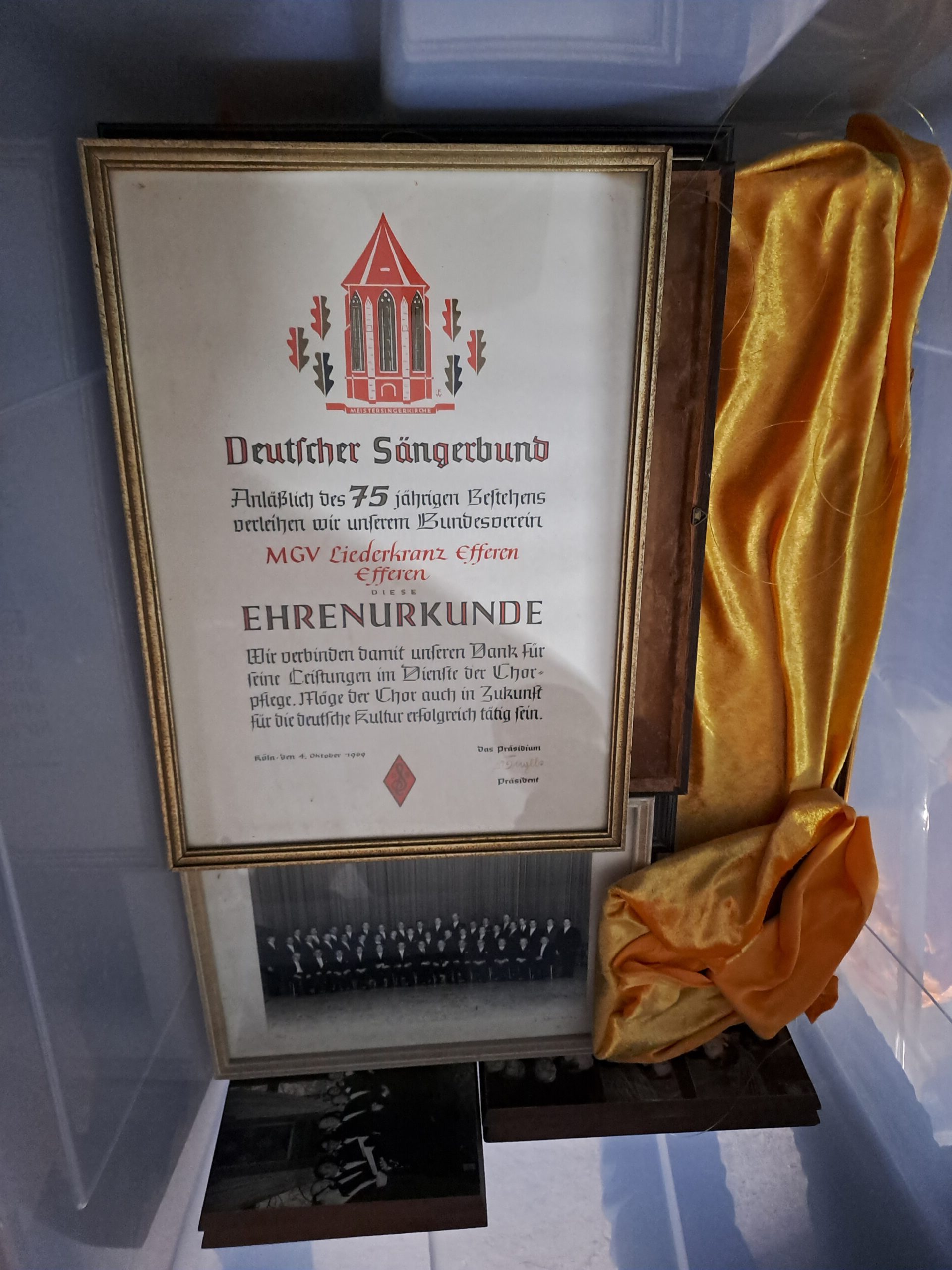 Nach dem Abschiedskonzert nun die Suche nach Urkunden, Dokumenten, Fahnen, Standarten, Pokale und Medaillen für das Stadtarchive Hürth. Kisten wurden gefüllt mit tollen Erinnerungsstücken, die nun für die Ewigkeit ins Stadtarchive kommen. Diese können zu allen Gelegenheiten ausgeliehen werden, also ein guter Ort für die Geschichte – MGV Liederkranz!